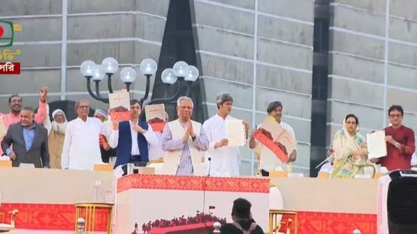 অন্তর্বর্তী সরকারের প্রধান উপদেষ্টা অধ্যাপক মুহাম্মদ ইউনূস এবং বিভিন্ন রাজনৈতিক দলের নেতারা জাতীয় ঐকমত্যের প্রতীক ‘জুলাই জাতীয় সনদ’-এ সই করেছেন। শুক্রবার (১৭ অক্টোবর) বিকেল ৫টার দিকে জাতীয় সংসদ ভবনের দক্ষিণ