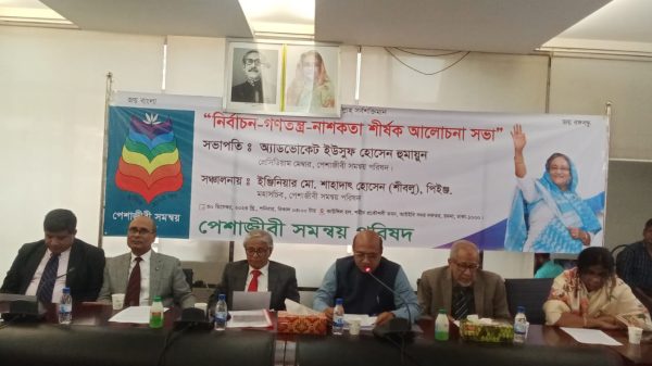 নিজস্ব প্রতিবেদক: পেশাজীবী সমন্বয় পরিষদের নেতারা বলেন, দেশের যে কোন জাতীয় সংকটে পেশাজীবীরা অগ্রগণ্য ভূমিকা রেখেছেন। আসন্ন দ্বাদশ জাতীয় সংসদ নির্বাচনে পেশাজীবীরা গুরুত্বপূর্ণ ভূমিকা পালন করবে। নির্বাচনকে অগ্রহণযোগ্য করার জন্য