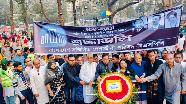 ঢাকা: বাংলাদেশ সম্মিলিত পেশাজীবী পরিষদের সদস্য সচিব কাদের গনি চৌধুরী বলেছেন, ‘একুশের মর্মবাণী হচ্ছে মাথা নত না করা। অধিকার ও দেশের মালিকানা নিজেদের রাখা। তিনি বলেন, বাক স্বাধীনতা, গণতন্ত্র, ভোটাধিকারহরণসহ