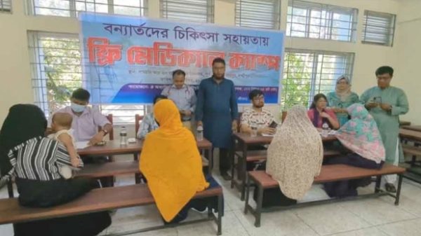 লক্ষ্মীপুর প্রতিনিধি: বন্যাদুর্গত লক্ষ্মীপুর জেলার রায়পুরের পূর্ব কেরোয়ায় ৫০০ রোগীকে বিনামূল্যে চিকিৎসা সেবা দেওয়া হয়েছে। চিকিৎসা শেষে তাদের মাঝে বিনামূল্যে ওষুধ বিতরণ করা হয়। চারজন চিকিৎসকের মাধ্যমে বন্যার্তদের বিনামূল্যে