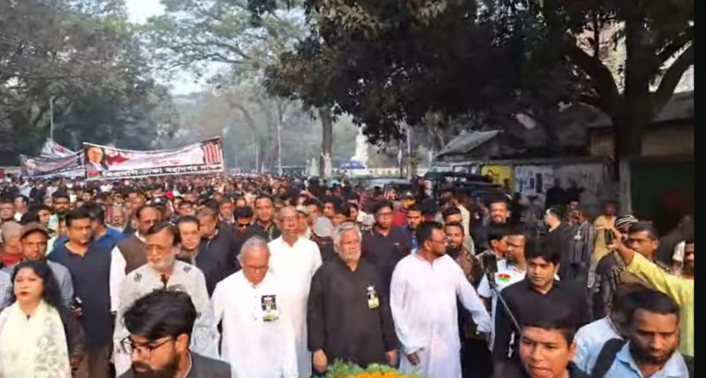 এর আগে ভোর সাড়ে ছয়টায় নিউ মার্কেটের কাছে বলাকা সিনেমা হলের সামনে থেকে বিএনপির নেতা-কর্মীদের নিয়ে বিশাল প্রভাত ফেরি আজীমপুর কবরস্থানে যায় রিজভীর নেতৃত্বে। সেখানে ভাষা শহীদদের কবরে পুস্পমাল্যঅর্পন এবং ফাতেহা পাঠ করে কেন্দ্রীয় শহীদ মিনারে আসে বিএনপির প্রভাত ফেরি।